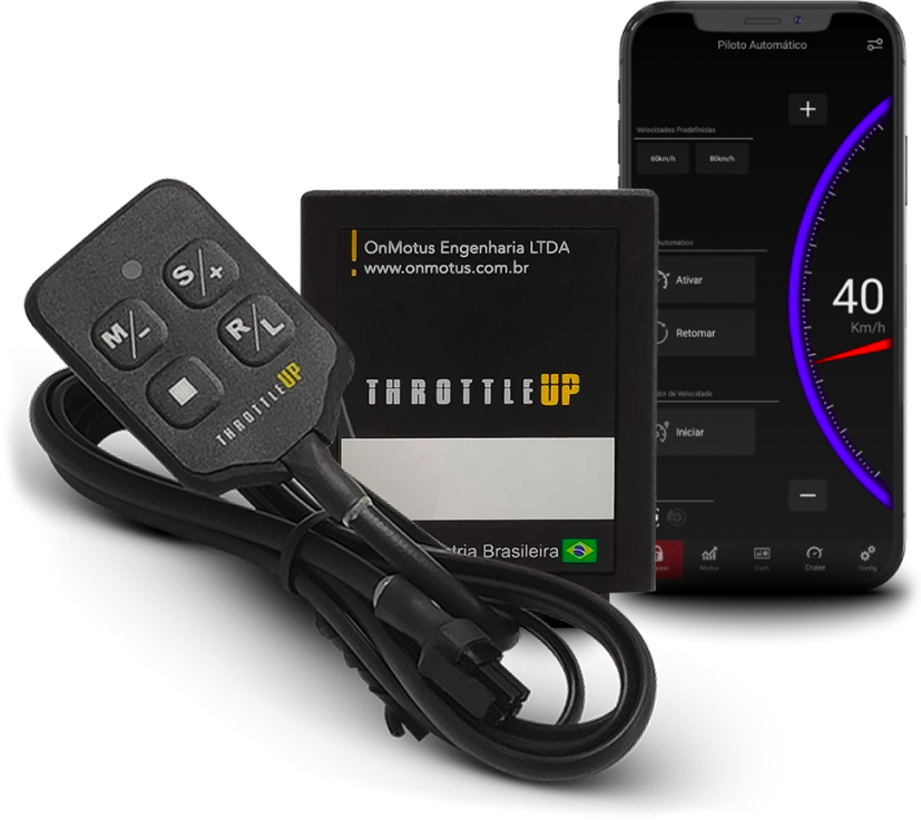 Tudo controlado via aplicativo ou direto no dispositivo Throttle UP fixado no painel do carro.